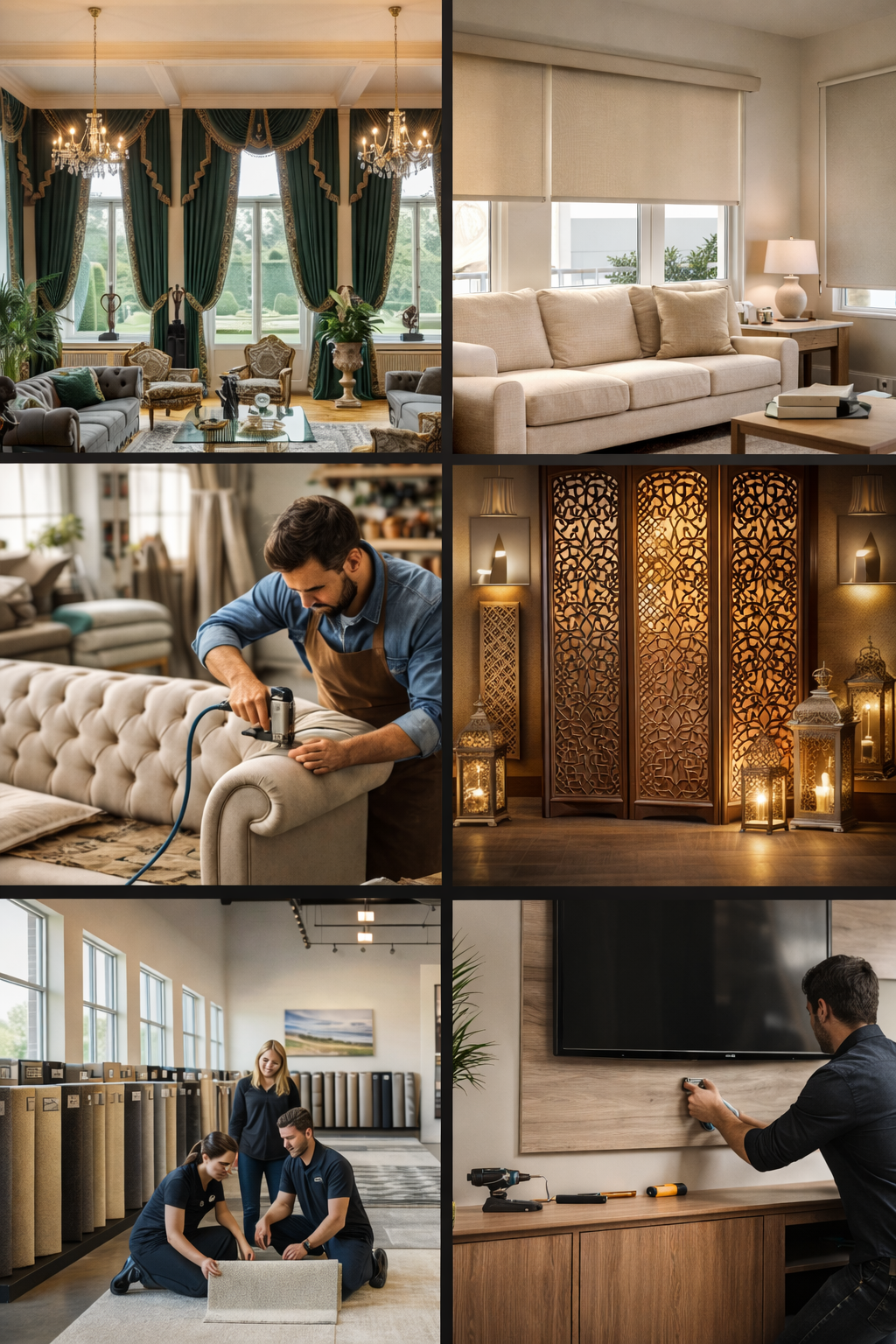 We visit your location for accurate measurements and expert guidance. Choose from premium fabrics, styles, finishes, and materials that suit your space and budget.